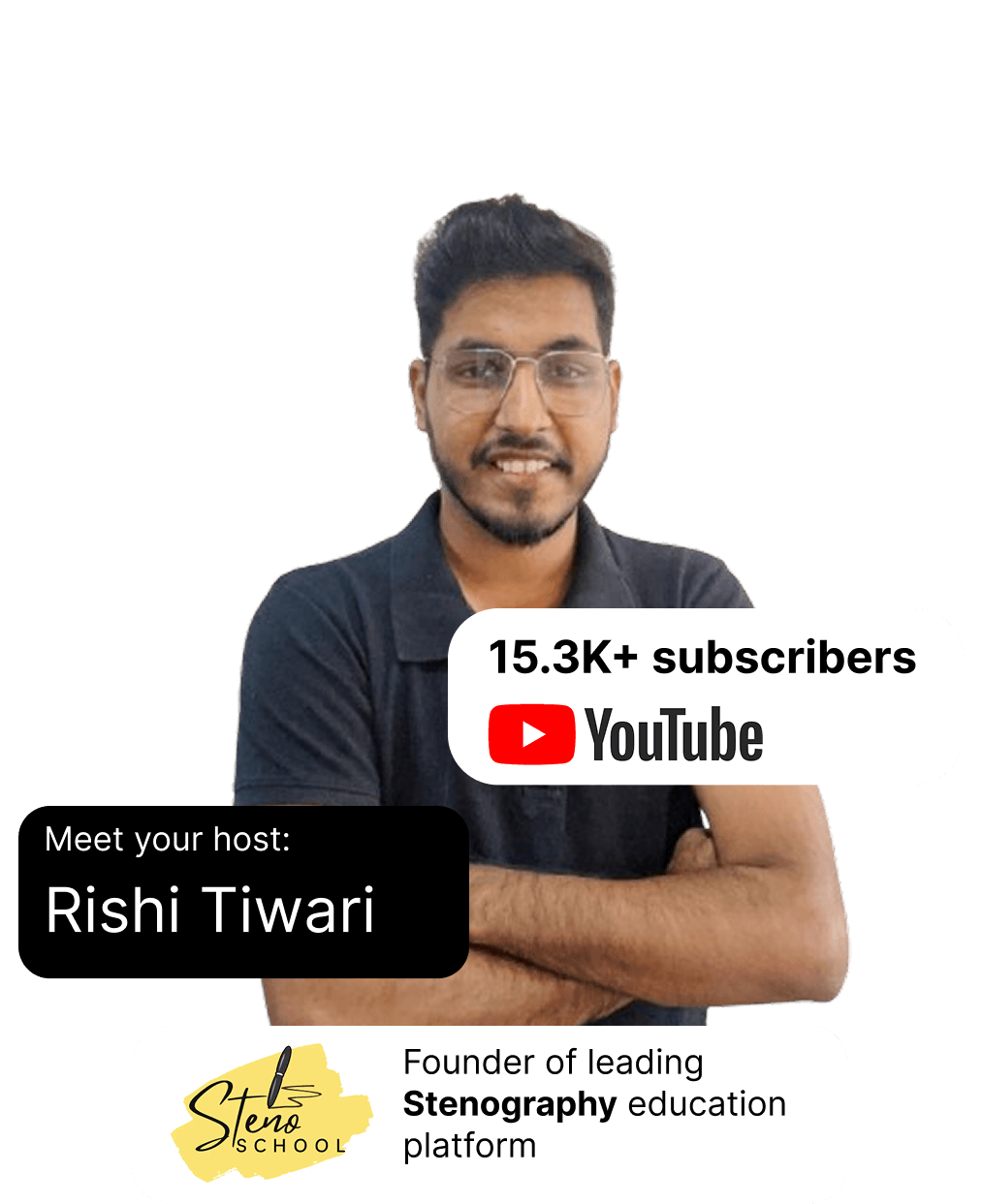 With over 6 years of experience in stenography, Rishi Sir has successfully cracked multiple Steno Skill Tests, demonstrating his expertise in the field. He brings a unique and engaging approach to teaching, ensuring that learning shorthand is not only effective but also enjoyable.